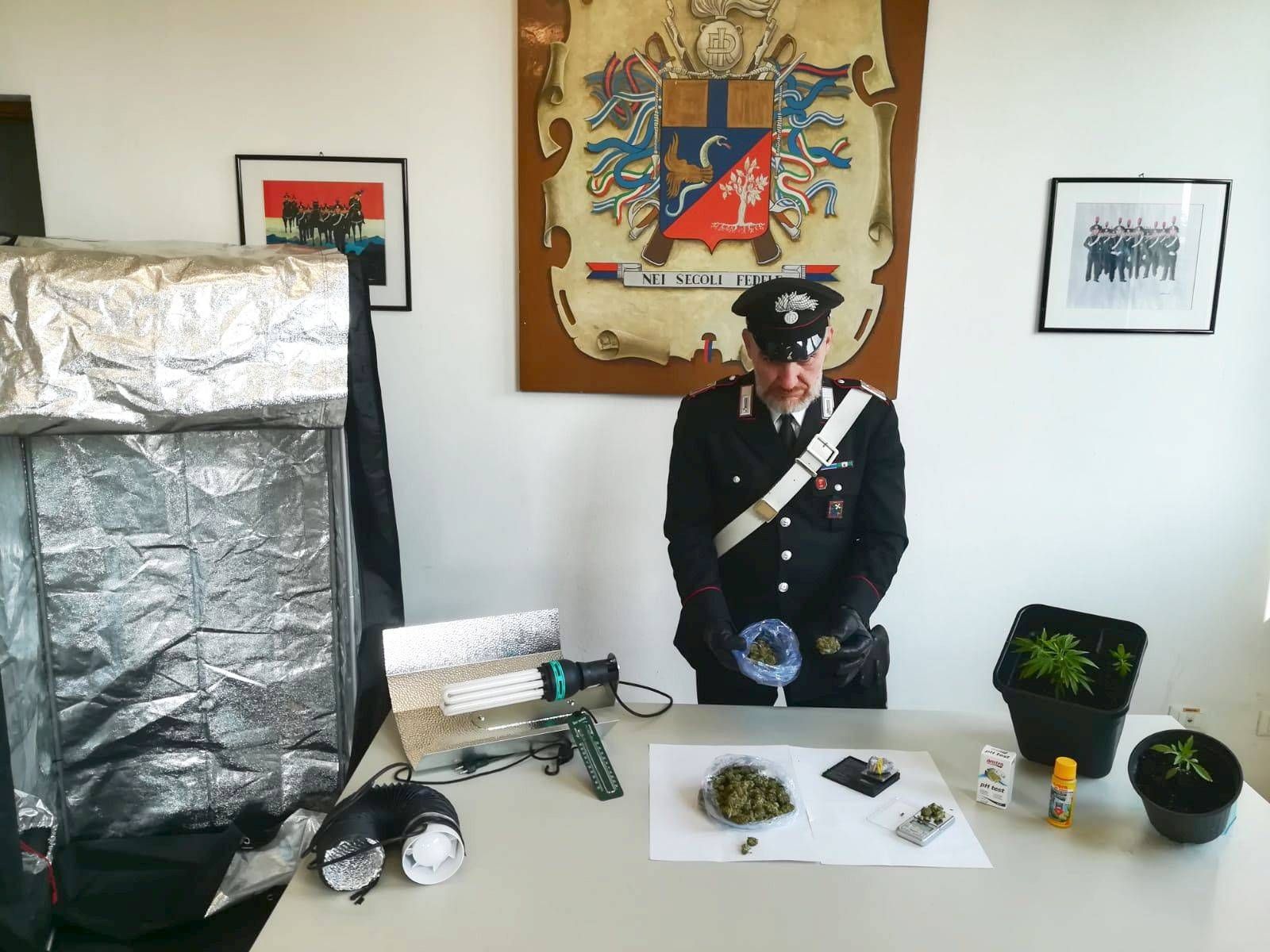 Il pusher è stato sorpreso da una pattuglia dei militari dell’Arma di Garbagnate Milanese verso le 13.30, mentre offriva dosi di stupefacenti ad alcuni ragazzini che stavano andando in stazione. Questi ultimi, alla vista degli uomini in divisa, si sono dati alla fuga, mentre il 18enne è stato subito bloccato e identificato (è B.C., residente a Caronno): perquisendolo, addosso gli sono stati trovati diversi grammi di marijuana confezionata e pronta per la vendita. E’ quindi scattata, per approfondimenti, la perquisizione domiciliare: nella sua cantina di casa è così venuto alla luce un piccolo laboratorio per la coltivazione e preparazione della droga, oltre a un’attrezzata serra riscaldata (in foto); all’interno alcune piantine di circa 10 centimetri, un bilancino di precisione, un termometro, un mini ventilatore, una lampada per orticoltura e altri attrezzi per il confezionamento delle dosi. Le piante e il materiale sono stati sottoposti a sequestro, mentre il giovane è stato arrestato e dovrà ora rispondere del reato di detenzione ai fini di spaccio di sostanze stupefacenti.