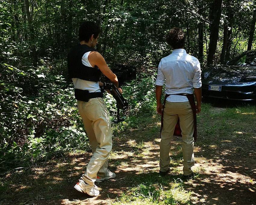 Una bellissima Porsche nera in mezzo al Parco delle Groane. L’area naturalistica della ex polveriera di Ceriano Laghetto e Solaro, oggi sede del Parco delle Groane, si è trasformata in un set cinematografico.