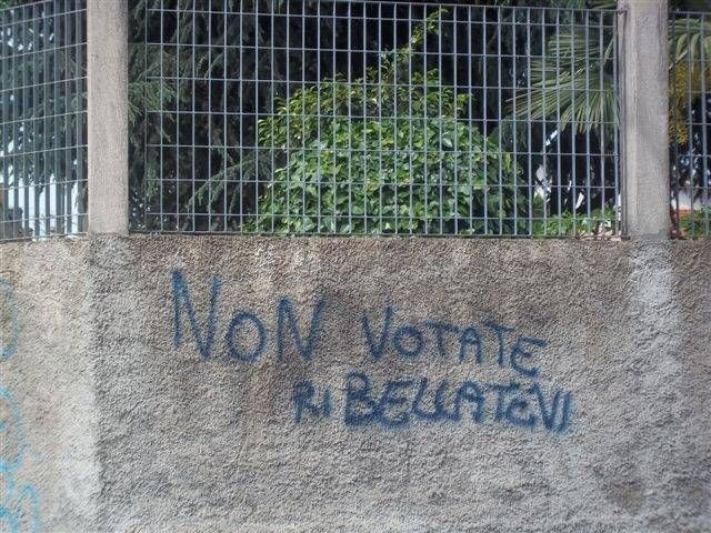 Le nuove scritte si riferiscono alle imminenti elezioni europee del 25 maggio e, da toni e contenuti, si direbbero opera di anarchici che vorrebbero non si andasse a votare come segno di protesta per la piega che ha preso la politica italiana, fra scandali e arresti. “Capiamo – commenta chi ne ha fatto le spese – ma devono prendersela proprio con la proprietà privata?”.