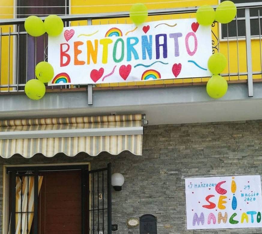 Ad accogliere il 67enne alcuni cartelloni realizzati dai nipotini.