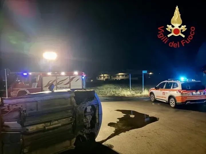 Incidente a Rovello Porro, auto ribaltata, moto prende fuoco, morto 26enne
