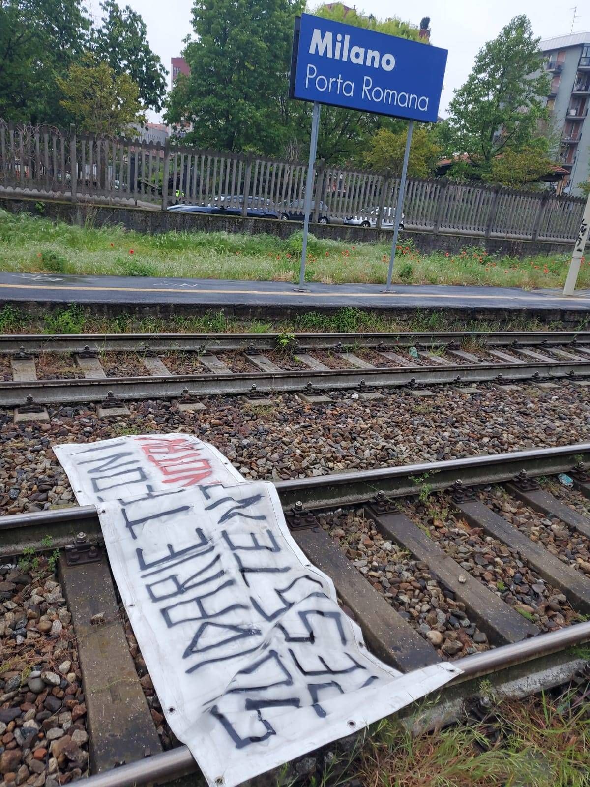 Questa mattina, martedì 27 aprile, poco dopo le 7, mentre il treno 24922 (Albairate 6.38-Saronno 8.24) della linea ferroviaria S9 Saronno-Seregno-Albairate effettuava regolarmente fermata alla stazione Milano Porta Romana, un gruppo di persone, tutte col volto coperto, ha invaso i binari e ha impedito al treno di ripartire, stendendo a terra uno striscione con la scritta “Solidarietà con i resistenti No Tav” e imbrattando i vetri della cabina di guida e i fanali con vernice spray di colore nero.
