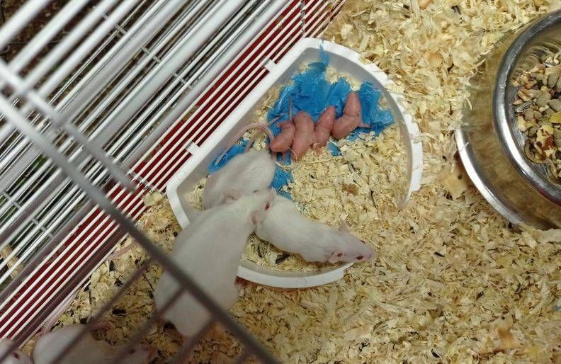 Sul treno una gabbia con topolini bianchi, anche neonati