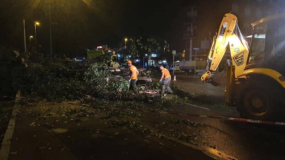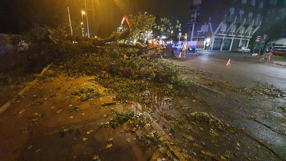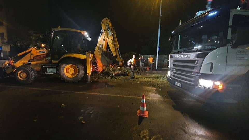 Le operazioni di taglio e rimozione di tronco e foglie si sono concluse solo all’alba, dopo oltre 8 ore di intervento. L’albero è caduto poco dopo le 22 schiacciando due auto: una in transito con una donna alla guida che è riuscita per un soffio a scappare spaventata.