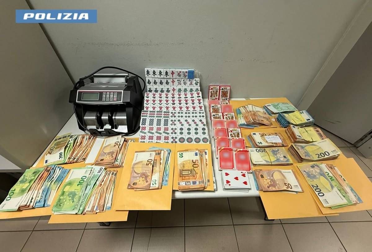 L’organizzazione della bisca era tutt’altro che amatoriale. Durante la perquisizione, gli agenti hanno rinvenuto un arsenale dedicato al gioco illegale: 38.000 euro in contanti, frutto delle puntate in corso e del “banco”; 3 tavoli elettrici professionali progettati specificamente per il mahjong e il poker; Una macchina conta-soldi, utilizzata per gestire rapidamente i flussi di denaro; Fiches, mazzi di carte e centinaia di tessere da gioco.